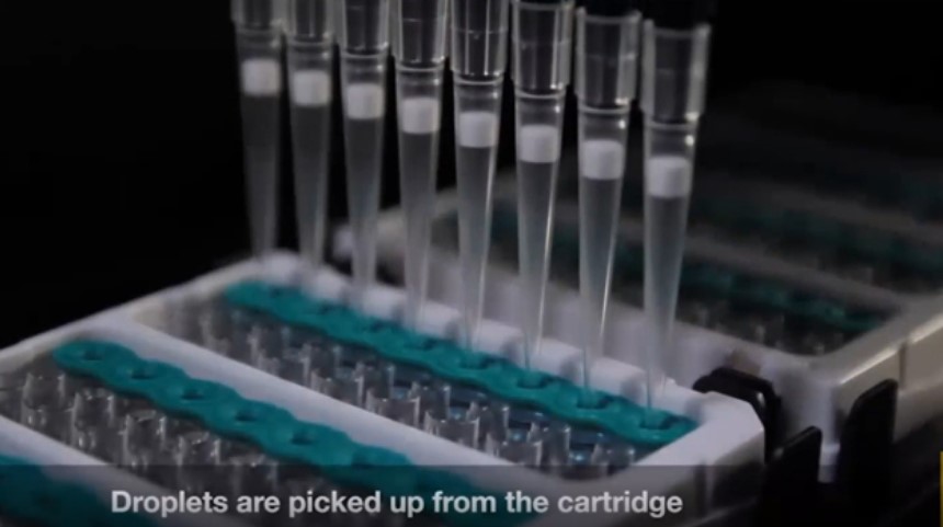 Стандартная раскапывающая система помогает генерировать капли из исходных образцов в специализированных картриджах, автоматически производить раскапывание и генерирование, что сильно ускоряет процесс и снижает влияние оператора.(Рис. 7-8)