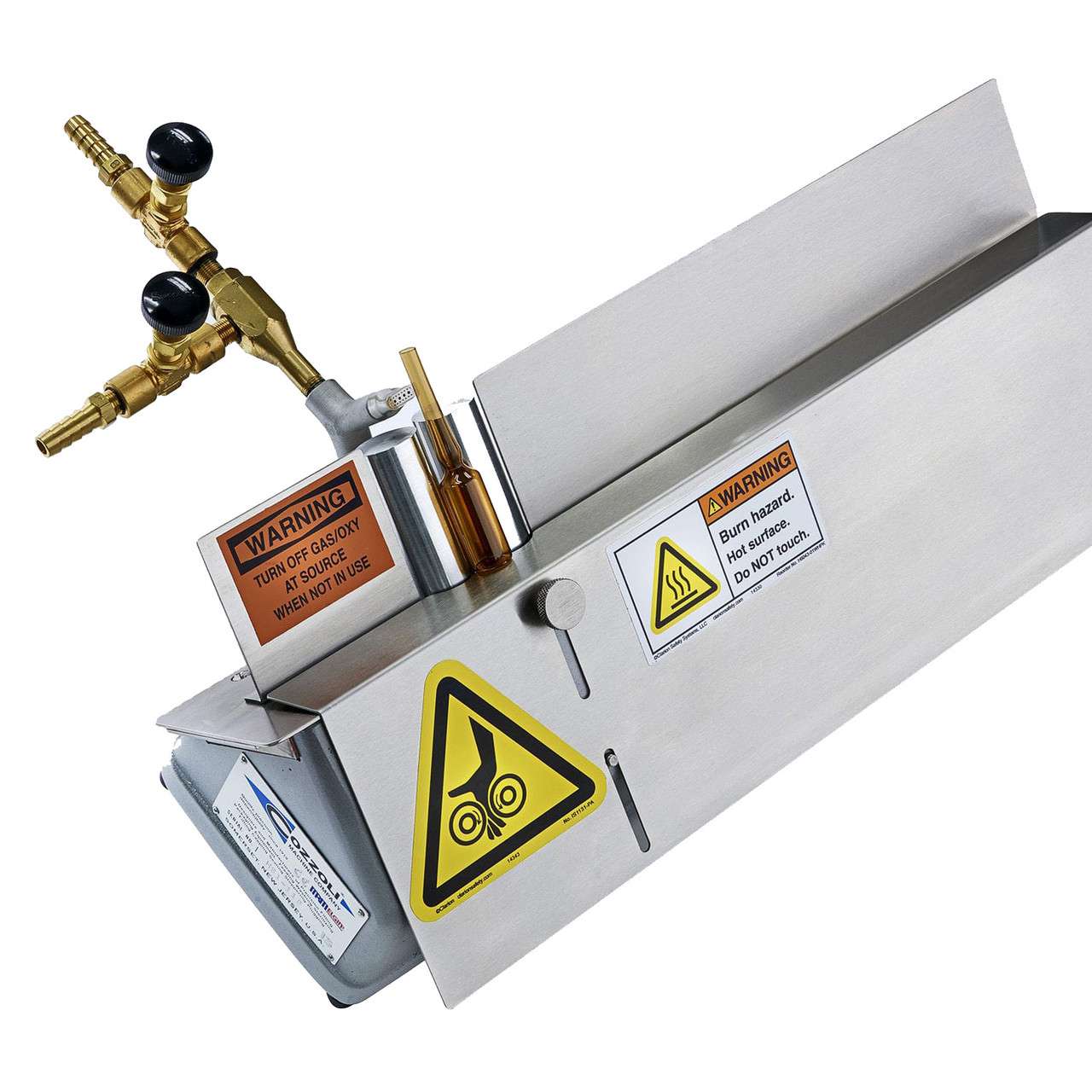 Заполненные не запаянные стеклянные изделия размещаются на полке и затем направляются на вращающиеся ролики. Для запайки обычно применяется смесь кислорода с легковоспламеняющимися газами (природным газом, пропаном или ацетиленом). Оператор регулирует степень горения до точки наивысшей эффективности и направляет пламя в нужную точку запайки. Для охлаждении продукта ампула удаляется с роллеров и перемещается на полочку.