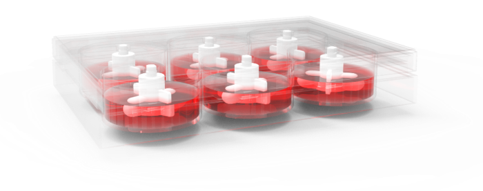 Планшет 6-ти луночный для биореактора microSPIN оснащен специальными крыльчатками для перемешивания.
