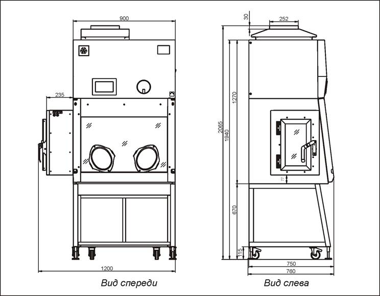 - окно оснащено двумя овальными перчаточными портами; на портах предусмотрены зацепления для установки автономного модуля проверки целостности перчаток (не входит в комплект поставки, поставляется в качестве опции;