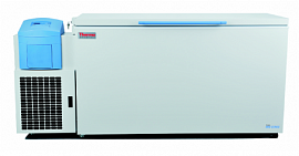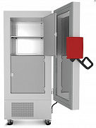 Принцип работы: в случае повышения/понижения температуры в камере морозильника относительно заданной автоматически включается back-up система – в камере морозильника открывается клапан, через который впрыскивается азот. Таким образом, температура в камере поддерживается на уровне примерно –135 °С. Время поддержания температуры – примерно 24 часа при объеме азота в сосуде Дьюара 100 л.