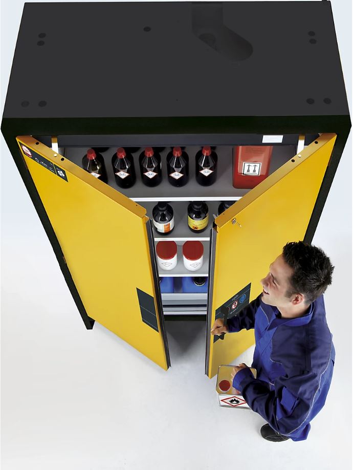 Q-Pegasus-90 ― шкафы для безопасного хранения прекурсоров и пожароопасных материалов с распашными дверцами с системой