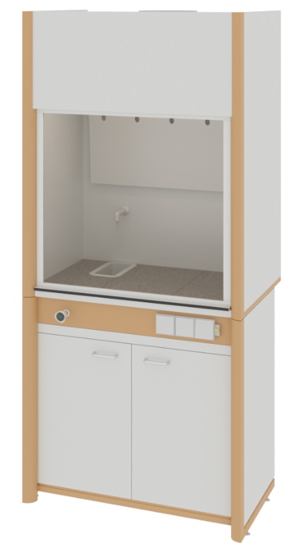 Шкаф вытяжной общего назначения, ширина 94 см, корпус – меламин, столешница – цельная керамика Fridurit 20, 1 подъемный экран, раковина, тумба, ЛОиП