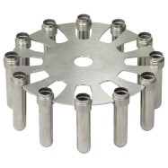 • стальные стаканы в комплекте 12 × 12 мл; размеры пробирок: (D x L) 16,8 × 115 мм, допускается применение 12 пробирок длиной 135 мм и 6 пробирок 150 мм, при загрузке ротора с интервалом в один адаптер;