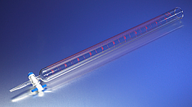 Бюретка, 500 мл, ц.д. 5, класс А, тип 1, исп. 1, с одноходовым тефлоновым краном, цветная шкала, 1 шт, Pyrex (Corning)
