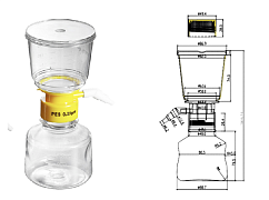 Комплект поставки: фильтр-воронка, встроенный фильтродержатель с мембраной, встроенный боковой вакуумный коннектор и приемная бутыль с крышкой.