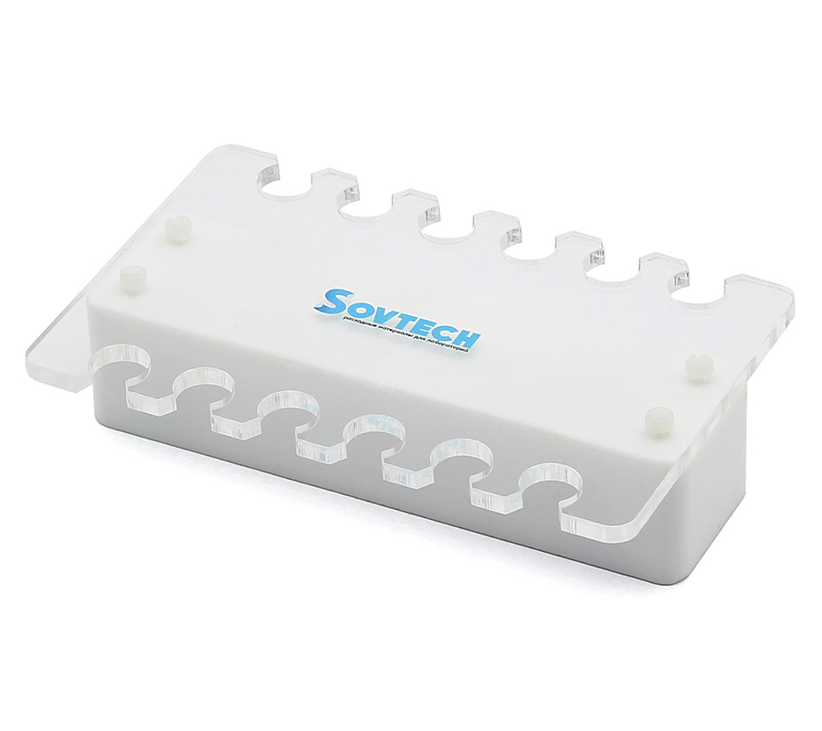 Адаптер представляет собой насадку для штатива МагСов-200, позволяющую работать с одиночными пробирками и стрипами объемом 0,2 мл. Разъем гнезд для пробирок на адаптере позволяет использовать пробирки разных производителей. Адаптер плотно фиксируется на штативе, благодаря специальным пазам и магнитам, легко снимается при необходимости. Может быть использован как обычный штатив для пробирок. Адаптер нельзя автоклавировать, обработка может быть проведена только неагрессивными моющими средствами.