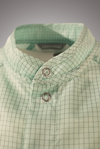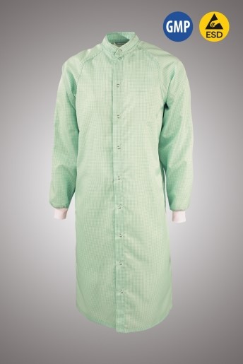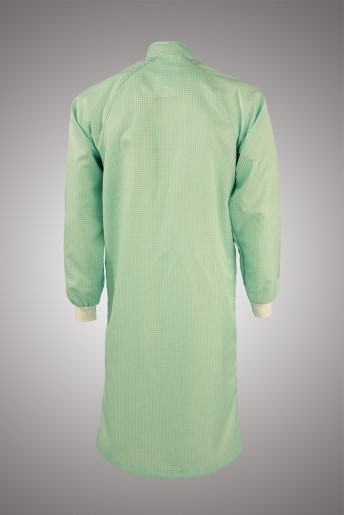 Защитная одежда для чистых помещений для работы в помещениях класса чистоты ISO 7 — ISO 8. Халаты многоразовые, изготовлены из полиэфирных тканей (96 % полиэстер, 4 % антистатическая нить; 52 % полиэстер, 45 % хлопок, 3 % углеродная нить; 65 % полиэстер, 35 % хлопок), подлежит стерилизации.