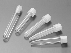 Круглодонные пробирки (U-образное дно) из полистирола (ПС) на 5 мл широко применяются в проточной цитометрии.
