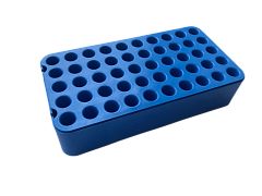 Цельнолитой штатив изготовлен из пластика с лунками, в которые помещаются пробирки/контейнеры, отличается высокой механической прочностью (ударопрочный пластик) и устойчивостью к воздействию химических реагентов. Благодаря своей конструкции штативы легко и прочно штабелируются, обеспечивая экономию пространства при хранении. Особенно подходит для компактного хранения резервных копий образцов. Блочный штатив удобно дезинфицировать, благодаря сквозным отверстиям в каждой лунке. Подлежит автоклавированию.