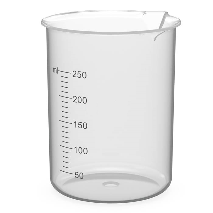 Стакан 250 мл, ПП, с носиком, с градуировкой, низкий, Россия