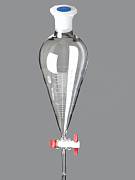 Воронка делительная, грушевидная, шлиф 29/32, с выпускным запорным краном из PTFE, пробка ПП, 1 шт./уп., Glassco, Индия