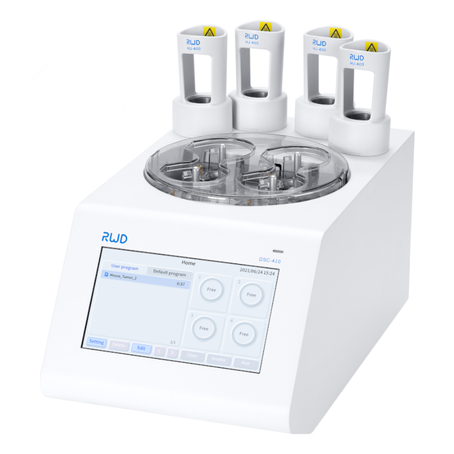 Прибор для подготовки клеточных суспензий DSC-410 использует пробирки для обработки тканей, наборы для диссоциации тканей и встроенные программы оптимизации для приготовления высокоактивных моноклеточных суспензий и гомогенатов тканей. Приготовление моноклеточной суспензии с высокой жизнеспособностью клеток может быть выполнено в течение 15-30 минут, что делает эксперименты более воспроизводимыми. 4 независимых места для образцов позволяют эффективно автоматизировать процессы и повысить качество обработки тканей. Прибор широко используется в секвенировании единичных клеток, культивировании клеток, сортировке клеток, клеточной терапии и других областях исследований. Основные преимущества диссоциатора клеточного DSC-410, RWD