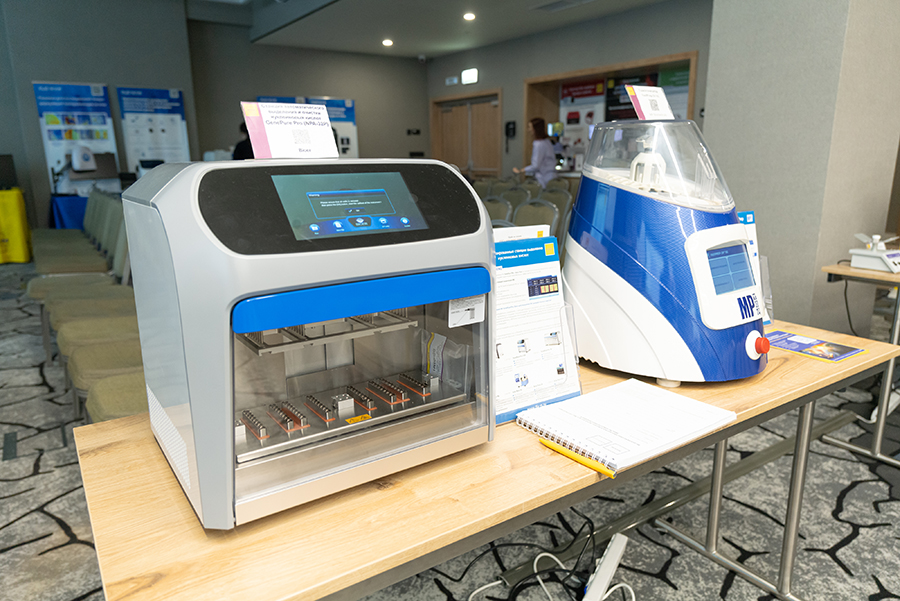 Доклады и опыт использования спектрофотометров, флуориметров, амплификаторов, капиллярных генетических анализаторов позволили свести воедино теорию и практику генетического анализа. Демонстрируемое оборудование охватило весь спектр рабочего процесса. Этап экстракции НК и ДНК был показан на примере станций выделения MP Bio, Bioer; а также комплектов реагентов для экстракции НК на спин-колонках и магнитных частицах (diaGene, MP Bio, Bioer, Raissol и др.).