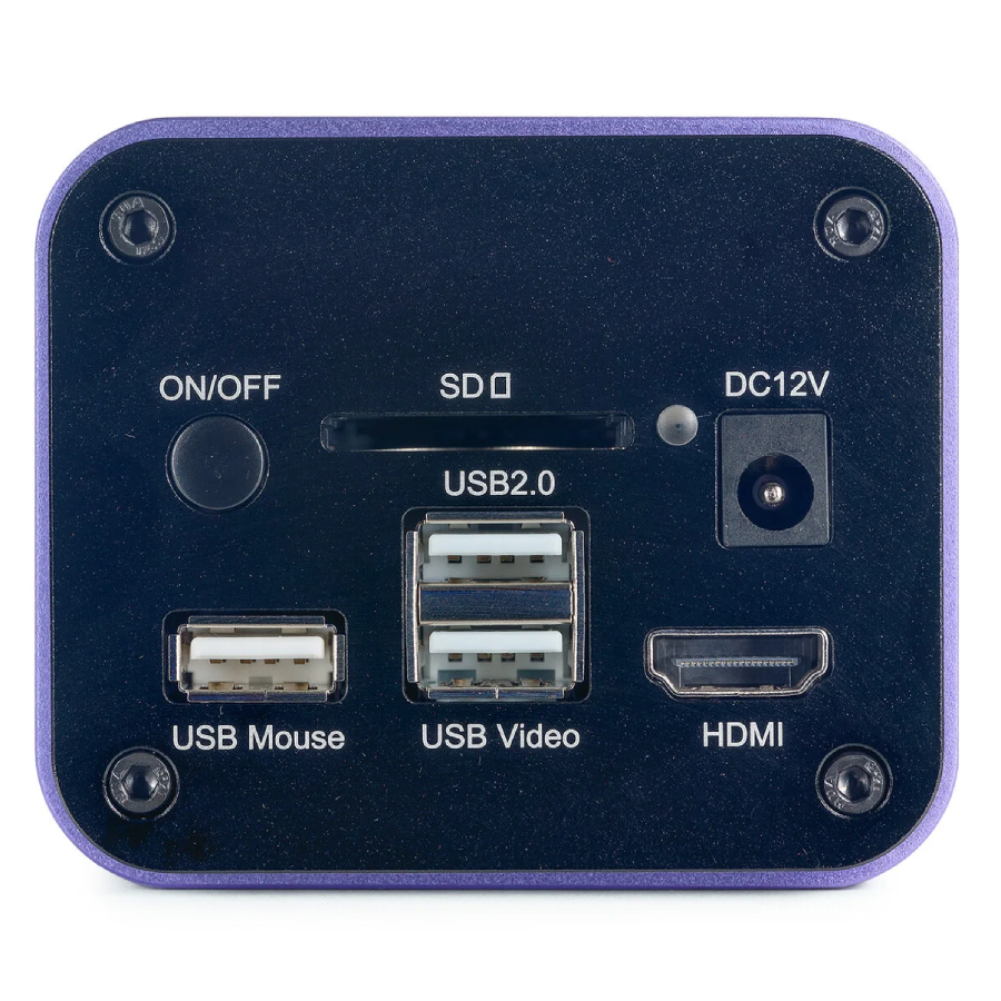 Цифровые камеры отображают исследуемые под микроскопом микрообъекты на мониторе в реальном времени, обеспечивая создание четких снимков и видео, а также сохраняя всю полученную информацию для формирования базы данных. Разрешение матрицы варьируется от 1,7 Мп до 21 Мп. Размер матрицы — от 1/2,8” для стандартных ежедневных работ и до 4/3” для научных исследований. Пиксели имеют размеры от 1,25×1,25 до 9,0×9,0 мкм. Увеличение размера пикселя приводит к снижению шумов на изображении и повышению световой чувствительности устройства. Варианты исполнения — монохромные — для флуоресцентной микроскопии и цветные — если для наблюдения изучаемого микрообъекта важна цветопередача. Имеет порты HDMI — для подключения стереомикроскопа, USB 3.0 — для использования в исследовательских лабораториях и обучении в высших учебных заведениях.