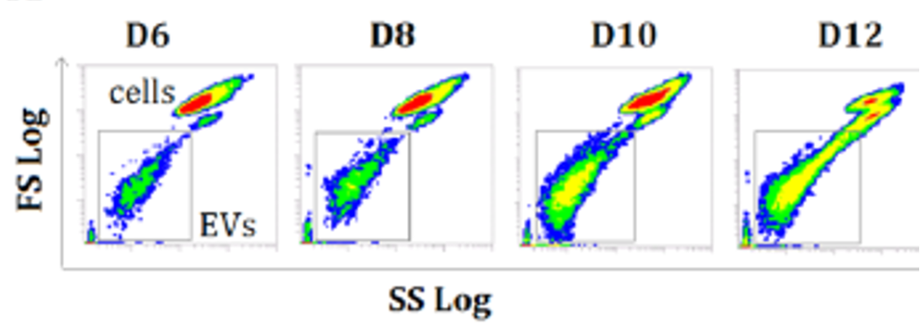 Умирающие клетки выделяют большое количество везикул (Рисунок 1), концентрация внеклеточных везикул может быть использована в качестве параметра, который отражает условия в биореакторах и даёт информацию о текущем состоянии биопроцесса. Если концентрация внеклеточных везикул увеличивается это свидетельствует о том, что условия в биореакторах ухудшились, это последствие апоптоза или ускоренной пролиферации клеток.