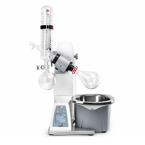 Ротационный испаритель RE100-Pro (аналог RV 3 V) является автоматической моделью с объёмом бани 5 литров и большим диапазоном температур до 180 °С. Благодаря специально сконструированным стеклянным направляющим, вертикальный конденсатор эффективно использует охлаждающую поверхность площадью 1000 см². Цифровой дисплей скорости вращения и температуры нагрева позволяет оптимально контролировать все процессы дистилляции. Запатентованное уплотнительное кольцо с двойной пружиной, изготовленное из ПТФЭ, обеспечивает превосходное уплотнение. Характеристики ротационного испарителя RE100-Pro