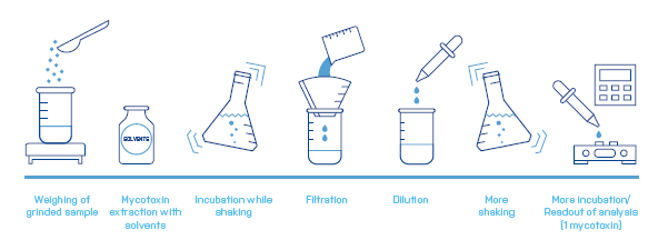 Рис. 1 Типичные этапы ручного тестирования на микотоксины |