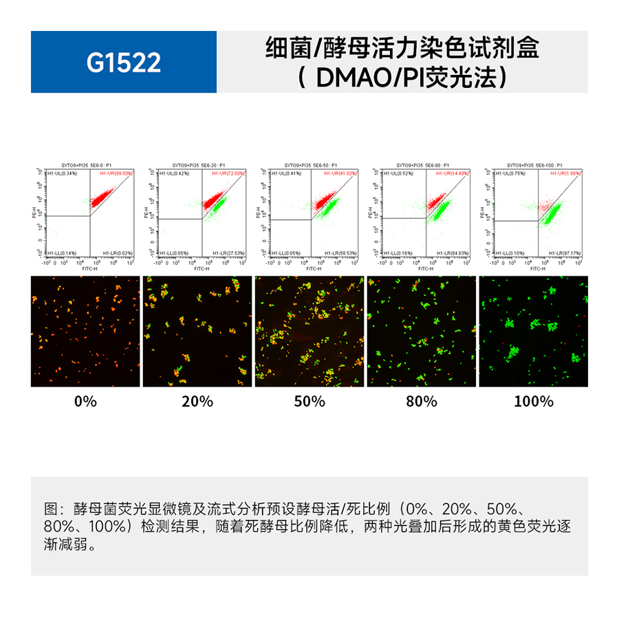 Набор применяется для оценки состояния живых и мертвых бактерий методом окрашивания нуклеиновых кислот зеленым красителем DMAO и красным флуоресцентным красителем пропидий йодидом (PI). Набор совместим с такими флуоресцентными методами как определение на микропланшетных ридерах, цитометрах и микроскопах с флуоресцентным методом анализа. Подходит для работы с многими грамотрицательным и грамположительным бактериям, в том числе E.coli, Bacillus subtilis, micrococcus lysoides и т.п. Данный набор применим для оценки жизнеспособности дрожжей. Совместное использование DMAO и PI позволяет разделить живые клетки от мёртвых, так как если присутствуют живые бактерии, то их неповрежденная структура мембраны начинает светиться в зеленом спектре, в то время как мертвые клетки имеют поврежденную мембрану и будут флуоресцировать в красном спектре. Максимальными длинами волн красителей в сочетании с НК являются: возбуждение 496/528 нм (DMAO) и испускание 85/630 нм (PI). |